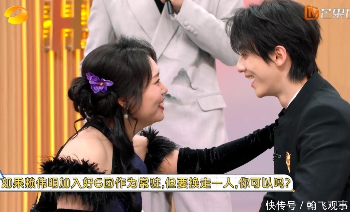 眼看李雪琴与赖伟明之间气场愈发融洽何炅临时加码第三题“假如赖伟明正式加入‘好六团’但必须替换掉其中一位成员你是否接受这一安排”